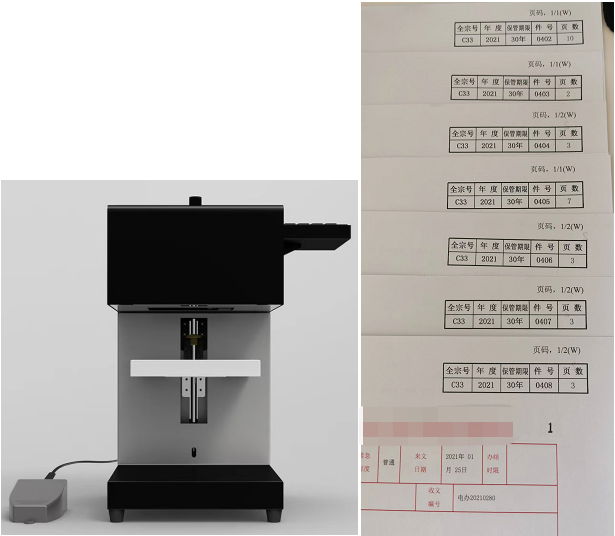 我公司档号章打印机使用的是路方归档章打印机GDZ-N10。此款打印机打印速度快,使用激光定位,方便调整位置,支持数据批量导入,支持红蓝黑三种颜色档号章打印。